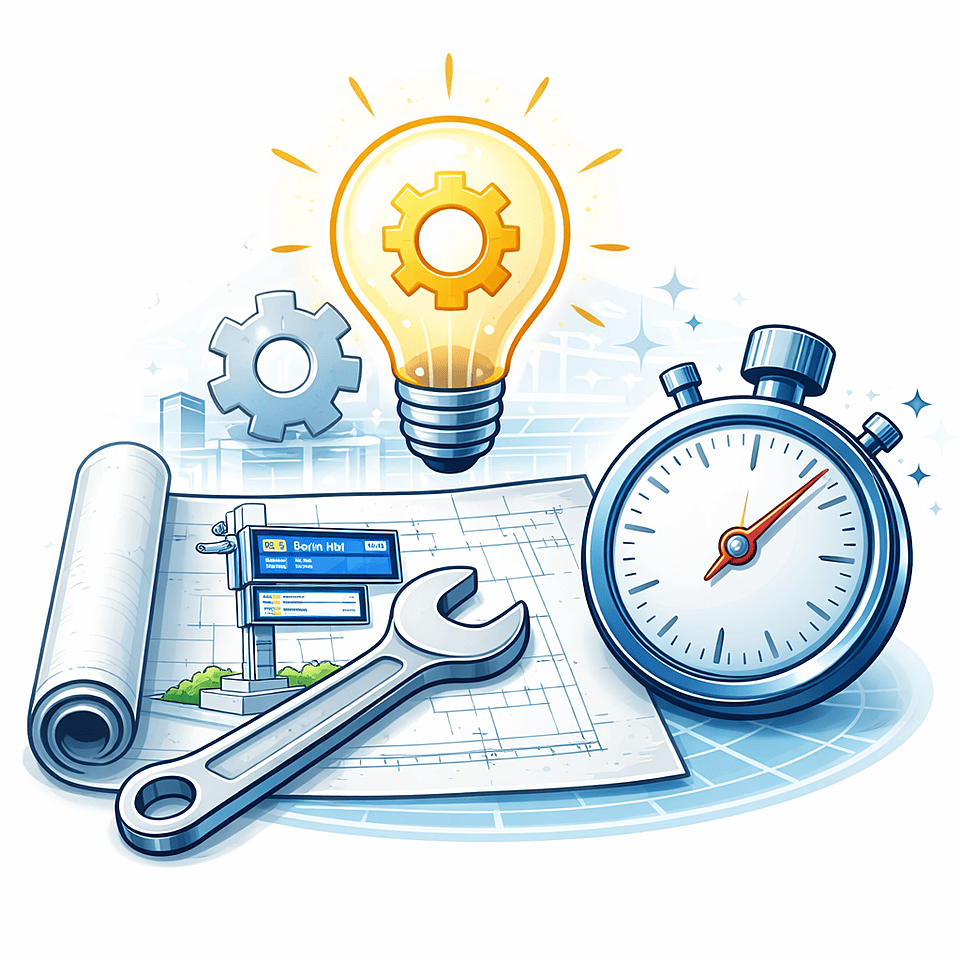 Unsere Mastsysteme für Zuginformationsmonitore aller Art bieten maximale Stabilität, Flexibilität und Anpassungsfähigkeit. Sowohl die Fundamente als auch die Ausführung der Maste werden je nach Anzeiger, Standort und baulicher Situation optimal angepasst.